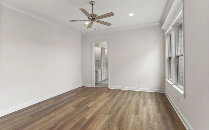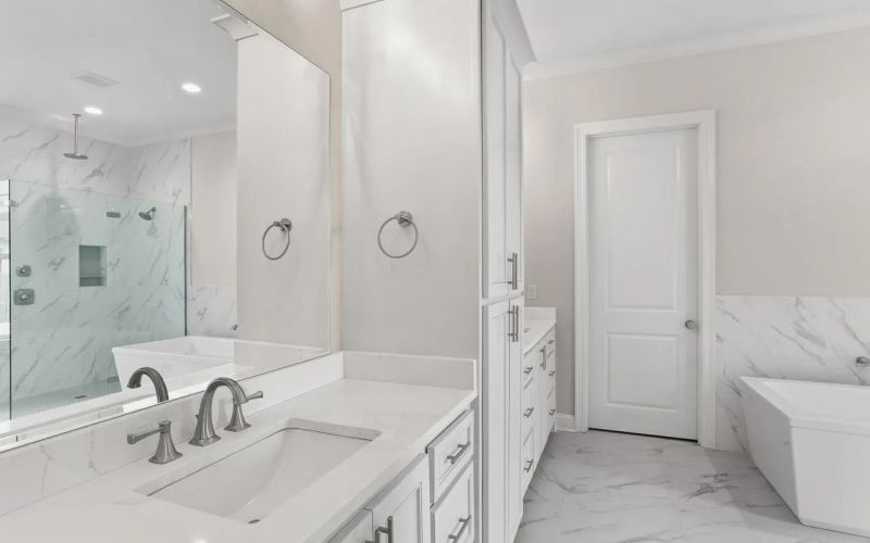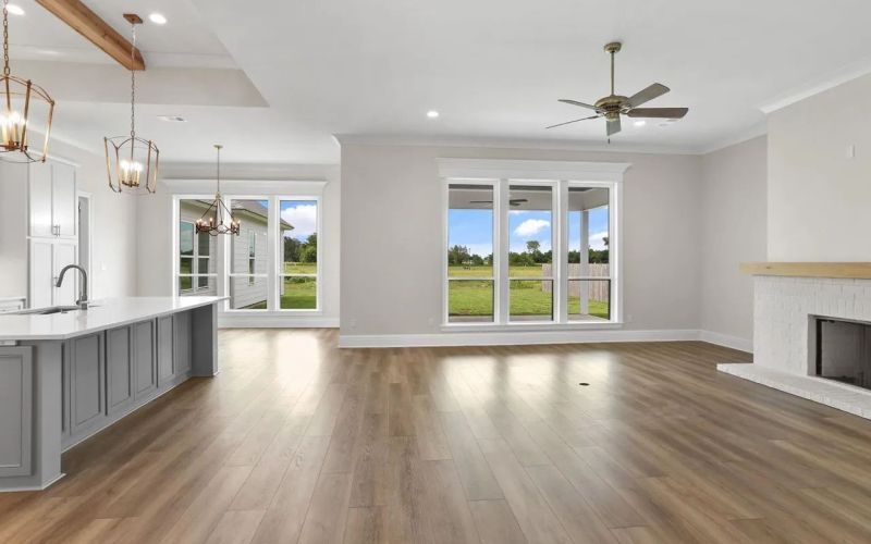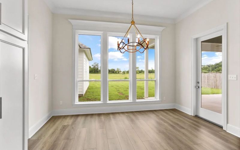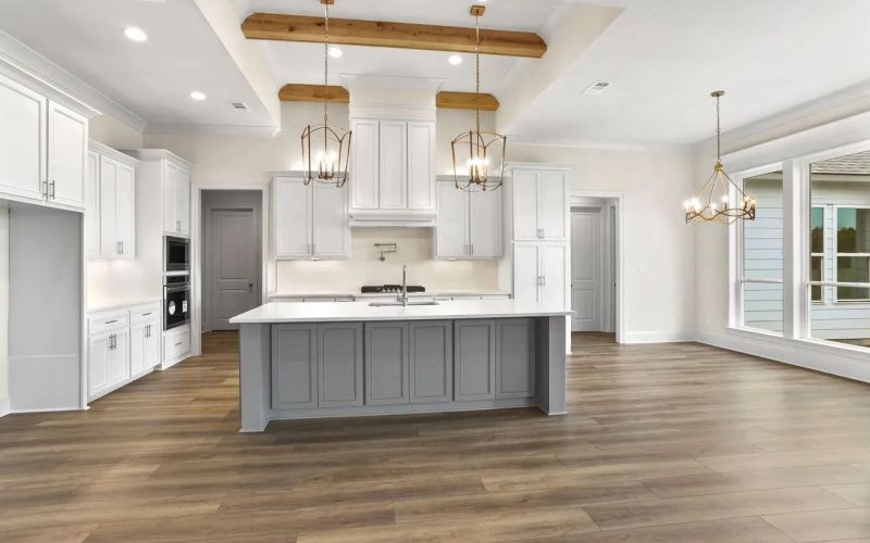 A welcoming foyer introduces warm architectural elements like varied ceiling heights and custom wood accents. With a stunning kitchen, anchored by a large island. You'll find sleek countertops, a bold designer backsplash, and custom cabinetry. Cooking is a joy thanks to the 5-burner gas stove, pot filler, and an oversized walk-in pantry. Off the kitchen, the open floor plan flows seamlessly into the den and dining area. The laundry room features generous storage, a mud sink, and space-saving utility features. Your private retreat awaits in the luxurious primary suite, complete with a spa-like bathroom that includes dual vanities, an oversized soaking tub, a multi-head glass shower and a walk-in closet. Light pours in through beautifully framed windows, creating an airy feel throughout and enhancing the indoor-outdoor connection.