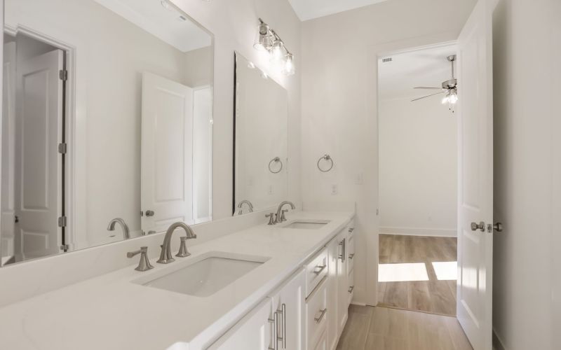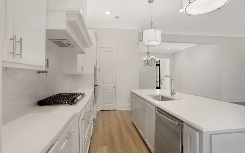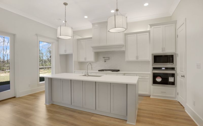 This brand-new 4-bedroom, 3.5-bath home is perfect for those who truly want it ALL! Step into the foyer that leads to an oversized Dining room with a stunning statement Wall hiding a clever bonus space?perfect for a bar, cozy library, or plenty of extra storage. The gourmet kitchen is fit for a chef, featuring beautiful backsplash, gleaming granite countertops, a large island, pot filler, and a spacious pantry. Flowing seamlessly into the den, the kitchen invites gatherings around a charming fireplace and a wall of windows framing the outdoor living area. The master suite is a true retreat, offering three distinct spaces: the spacious bedroom, a luxurious ensuite bath, and an oversized closet with many built ins. The additional bedrooms are thoughtfully designed, with private vanities and a shared wet area for two, while the secluded fourth bedroom boasts its own large bathroom.